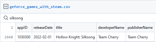 Αυτή η βάση δεδομένων κάνει τον γύρο του διαδικτύου εδώ και αρκετές μέρες, όμως χρειάστηκε η ευθυγράμμιση του δεύτερου πλανήτη, ονόματι Wok, ο οποίος ανέβασε στο forum του Steam την ημερομηνία κυκλοφορίας του Silksong, πάνω στην οποία έπεσε τυχαία, την ώρα που χάζευε την επίμαχη database της Nvidia.